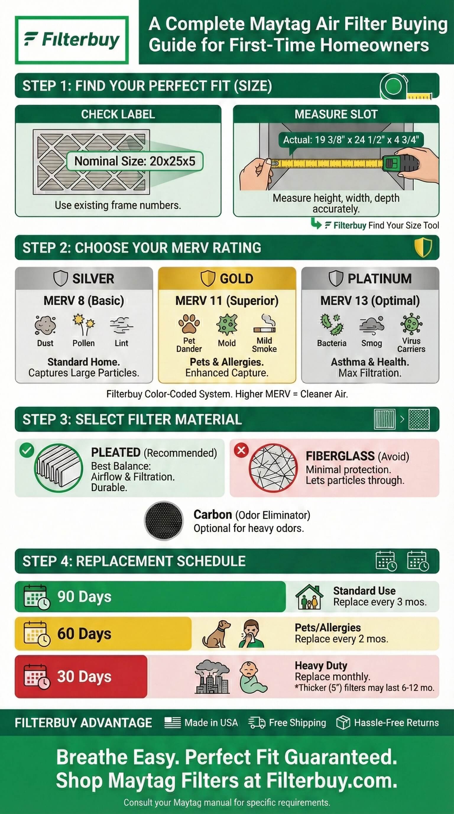 Owning your first home means tackling maintenance tasks you've never faced before—and nothing catches new homeowners off guard quite like the air filter aisle. If you've got a Maytag HVAC system and you're staring at dozens of filter options without a clue where to start, you're exactly who we built this guide for. After helping millions of homeowners find their perfect filter match, we've learned that the difference between struggling with indoor air quality and breathing easy often comes down to two things: knowing your exact filter size and understanding what MERV rating actually means for your household. Let's break it down together.